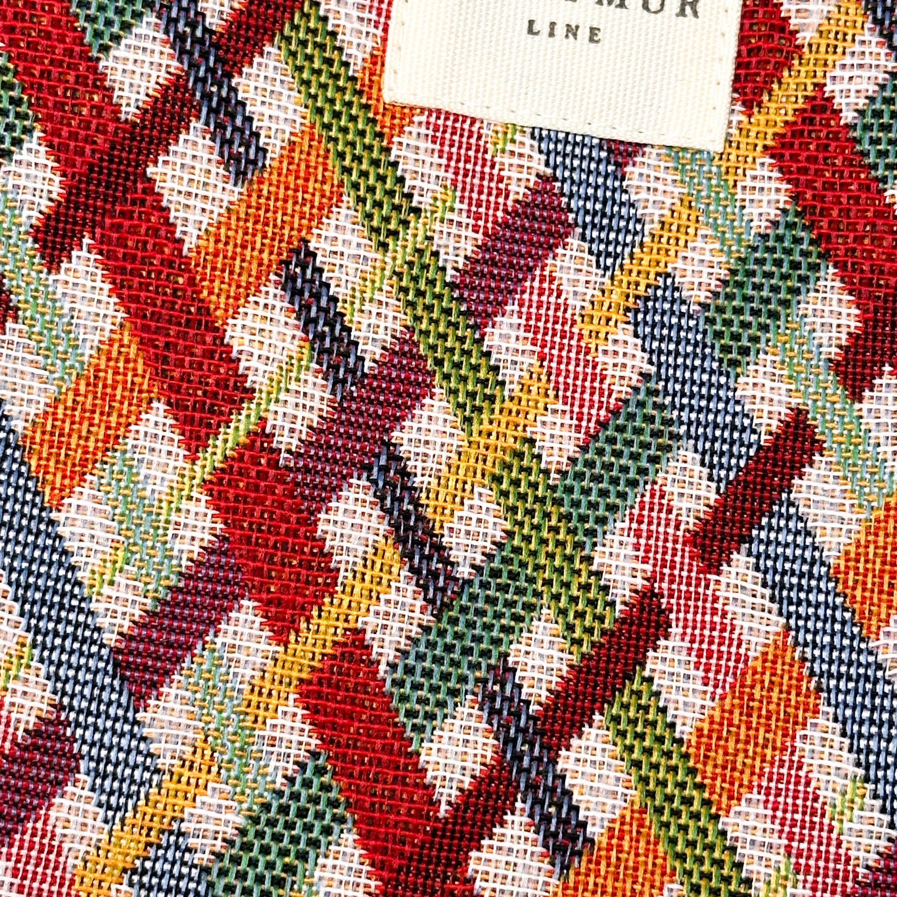 Bolsito porta móvil para llevar tipo bandolera. Con cremallera en la parte superior y cordón largo de algodón de color beige. Con tejido grueso de jacquard con estampado geométrico multicolor. Cada articulo puede tener una variación en el estampado, dependiendo de donde se haya efectuado el corte de la pieza. Forrado de tejido grueso de color gris en la parte interior. Para su correcto mantenimiento se aconseja lavarlo en frío a mano y no utilizar secadora.